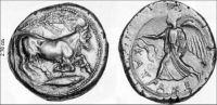 Eppure, in antico doveva essere un fiume importante con ben altro tracciato: i Calcidesi decisero di fondare la colonia di Katanè proprio sulla sua foce, e ne utilizzarono l’anfratto come primo approdo portuale della città. E su una delle prime monete battute dalla zecca catanese, un tetradramma del quinto secolo a.C., appare il dio fluviale Amenano rappresentato come un toro dalla testa umana incoronato da una Nike (o Vittoria) alata e sovrastante un animale marino, mentre sull’altra faccia della moneta è rappresentata una conchiglia marina: secondo l’interpretazione della Castagnino Berlinghieri, la moneta sottolinea “una stretta connessione del binomio fiume-mare, alludendo forse alla funzione marittimo-commerciale sostenuta in quel periodo dal porto”, che era un porto fluvio-lagunare.Una nuova ricostruzione viene ipotizzata dagli autori della ricerca archeologico-geologica: il fiume Amenano era collegato a “un’articolata situazione portuale sviluppatasi attraverso un complesso apparato fluviale con area endolagunare localizzabile principalmente in corrispondenza dell’attuale Piazza Duomo, utilizzata a partire dalla fase arcaica e per tutta l’età greca. Possiamo supporre – prosegue lo studio della Castagnino Berlingieri e di Monaco, adducendo riscontri di natura geologica – l’esistenza di più ambiti marittimi dislocati lungo l’antica linea di costa sulla quale sfociava un articolato apparato idrografico, utilizzato con destinazioni d’uso differenziate. Funzione mercantile doveva assolvere qualla parte del sistema fluviale che trovava il suo sbocco principale nell’area dell’attuale Piazza Duomo. (…) Funzioni militari, principalmente collegabili alle strategie belliche che segnarono il quinto secolo a.C., nell’ambito delle manovre militari degli ateniesi e loro alleati contro Siracusa, venivano assolte dalla fascia costiera a regime sabbioso che correva a est dell’attuale Castello Ursino, quella stessa spiaggia che ancora durante la seconda guerra punica è citata da Diodoro Siculo”.