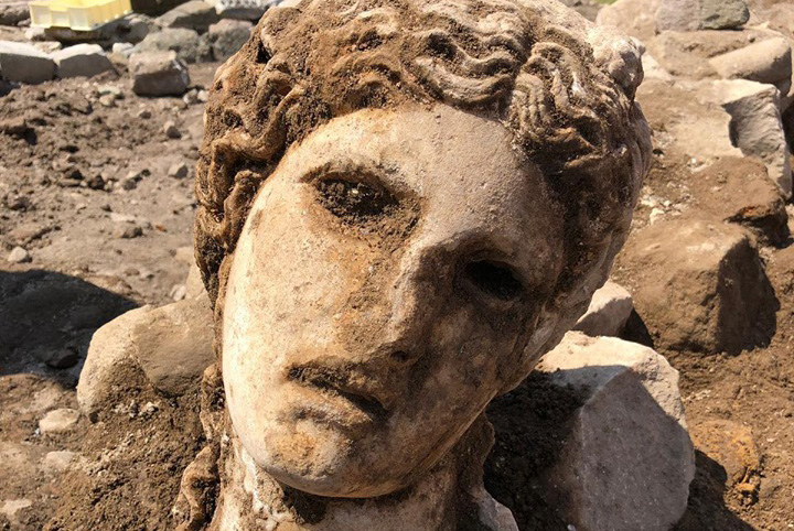 È stata ritrovata una testa di statua in marmo bianco ai Fori Imperiali venerdì scorso durante lo scavo archeologico di via Alessandria. La statua, spostata immediatamente nel Museo dei Fori Imperiali in attesa di restauro, è di una divinità maschile ...