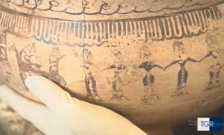Si tratta di un vaso che è stato rinvenuto in una tomba principesca appena scoperta. “E’ l’unico – spiega Simona Carosi, Soprintendenza Etruria meridionale – dei poco più dei dieci vasi attribuiti al pittore delle rondini di cui conosciamo il ...