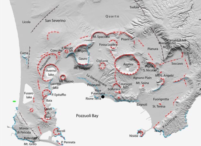 I Campi Flegrei sono una grande depressione vulcano-tettonica interessata da periodiche eruzioni e da persistenti fenomeni postvulcanici. Al centro vi sorge la città di Pozzuoli e, a breve distanza da questa, si trovano due aree solfatariche adiacenti, la Solfatara di ...