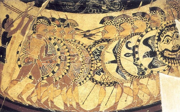 Gli opliti — il cui nome deriva dal greco oplon, “scudo” — erano guerrieri dotati di armatura pesante che combattevano fianco a fianco in una formazione serrata, la falange. L’oplitismo fu un fenomeno politico, militare e sociale sorto in Grecia ...