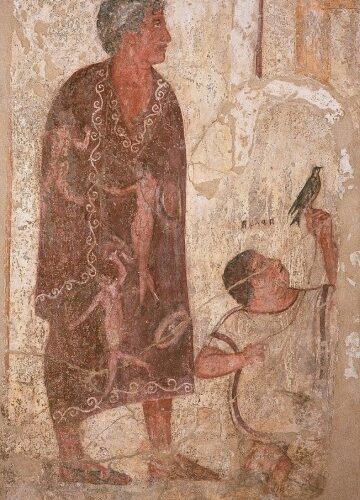 La pratica divinatoria basata sull’osservazione del volo degli uccelli (auspicium), effettuata da sacerdoti detti auguri, fu molto diffusa tra i Romani e, più in generale, tra gli Italici. L’auspicium faceva parte anche della disciplina etrusca ed era probabilmente inserita in ...