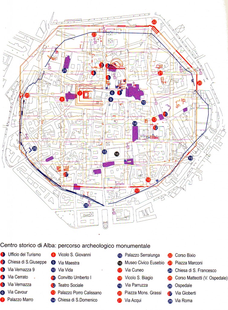 Vedi pianta del centro storico di Alba, percorso archeologico monumentale.