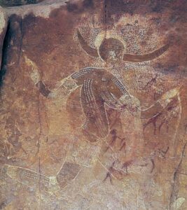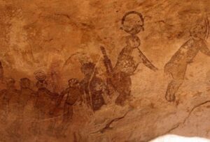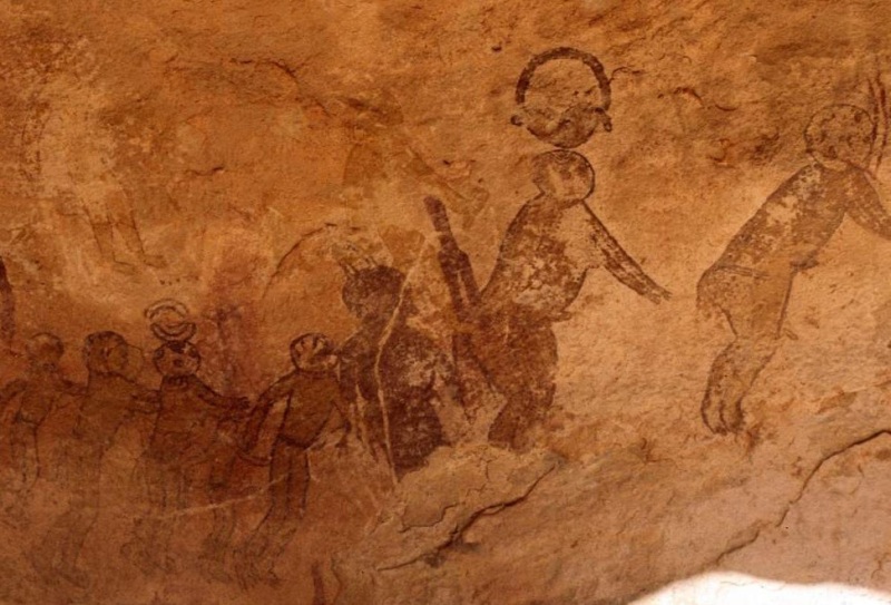 Ben 15mila sono le pitture rupestri fino ad ora identificate, appartenenti al periodo umido e temperato, tra il 10000 e il 2000 a.C., quando ebbe inizio il processo di desertificazione, quasi tutte dipinte su pareti interne a cavità create dall’erosione dell’arenaria e protette dalle rientranze della roccia. Al periodo arcaico, quando il clima era di carattere tropicale e la zona era abitata da cacciatori raccoglitori, risalgono le immagini di grandi mammiferi africani e scene di caccia.