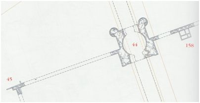 aquileiaL’accurato rilievo dell’epoca, mostra con chiarezza la struttura muraria e il suo inserimento, all’interno di elementi di spoglio, ad esempio nell’angolo sinistro in basso e nella parte frontale (fig. 2).