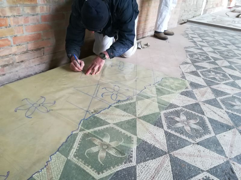 Proprio in questi giorni è stato avviato l’intervento su un elegante pavimento con decorazione a nido d’ape e fiori del I secolo d.C., scavato nel 1924 nei pressi del porto fluviale di Aquileia e fino ad oggi conservato nei portici delle gallerie lapidarie del Museo. Il mosaico troverà spazio all’interno del nuovo percorso espositivo, in una sezione dedicata alle sfarzose domus aquileiesi. Il suo restauro è stato possibile anche grazie al coinvolgimento del Museo in “Opera tua”, campagna promozionale di Coop Alleanza 3.0 a sostegno della valorizzazione del patrimonio artistico italiano, con la collaborazione di Fondaco Italia, società con sede a Venezia attiva nella valorizzazione dei beni culturali dal 2004 e giunta alla realizzazione del 70° progetto.