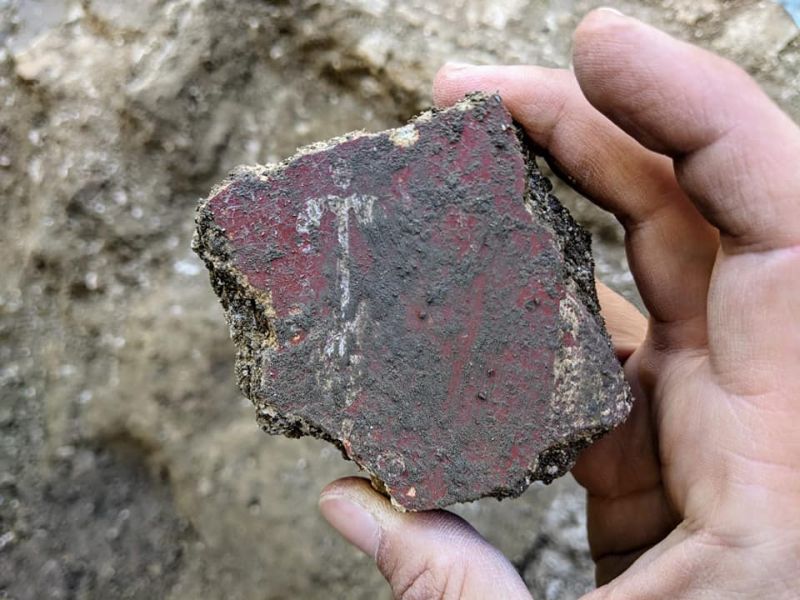 Gli archeologi stanno recuperando gli affreschi che presentano diversi temi decorativi, tra cui motivi a trompe l’oeil come cornici o rivestimenti in marmo, elementi vegetali, oggetti di uso domestico e un candelabro.