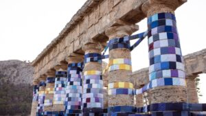 L’estate scorsa, alcune storie provenienti dalla Sicilia hanno fatto tornare d’attualità il tema di un uso più ampio e diversificato del patrimonio artistico, nella fattispecie archeologico, ovvero di un utilizzo che vada al di là del momento contemplativo e conoscitivo del bene/sito, per aprirsi alla realizzazione di eventi spettacolari o creativi di vario genere. In particolare, hanno avuto una grande eco le immagini del Tempio di Segesta, interessato da un’installazione tessile di Silvia Scaringella: senza entrare nel merito dell’opera, sorprende l’arco temporale esageratamente lungo (quasi un anno, fino al giugno 2025) in cui l’aspetto del tempio appare alterato in maniera assai significativa. Possiamo immaginare la faccia di chi percorre distanze talora notevolissime per ammirare le maestose colonne doriche e le trova, in parte, fasciate da tessere colorate. Un risalto ancora maggiore l’hanno avuto la notizia e le immagini del doppio concerto agrigentino de Il Volo, anche perché il pubblico presente è stato tenuto a rispettare il bizzarro obbligo di indossare un abbigliamento invernale in una torrida serata estiva, visto che l’evento sarà trasmesso dalla Rai come concerto natalizio.