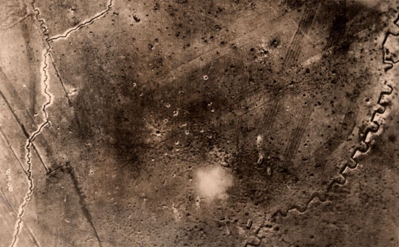 Immagine 1: Gli archeologi si sono basati sulle fotografie aeree scattate durante la Prima guerra mondiale per ricostruire il paesaggio bellico. Questa foto del 1917 mostra un campo di battaglia di Soissons, in Francia.