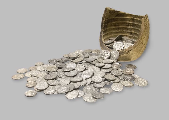 Il ripostiglio è composto da un vittoriato, un quinario e 232 denari databili dal periodo della seconda guerra punica (218-202 a.C.) al 100 a.C.