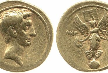 Alcune monete che rappresentano Augusto e la Vittoria. La Vittoria ...