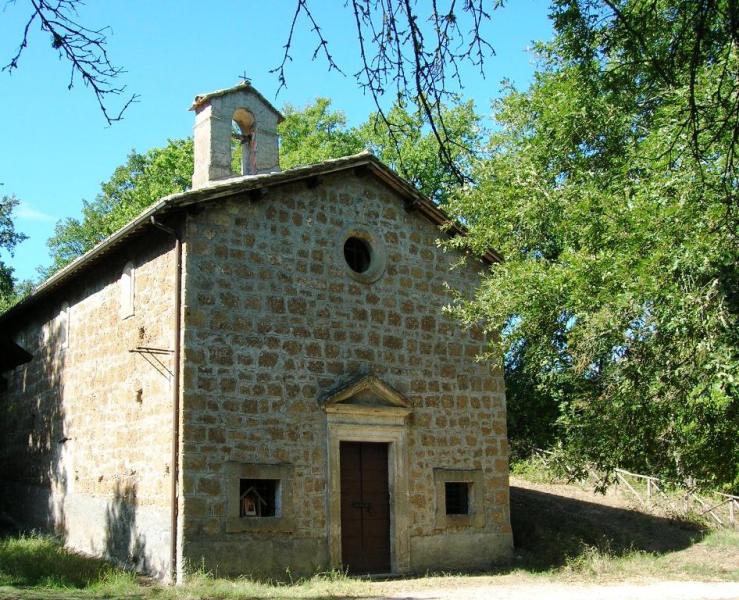 Questa chiesa dalla facciata semplice e piccolo campanile a vela (fig. 2) risale al XVI secolo, presenta una navata unica ed un’abside rettangolare, fu realizzata su una precedente chiesa rupestre a tre absidi del periodo romanico, scavata nel banco di tufo. All’interno della chiesa, sul muro di fondo dell’abside e sul retro dell’altare settecentesco, si trova una stretta nicchia semicircolare dalla quale inizia un breve cunicolo che conduce ad un piccolo ambiente, relativo all’abside centrale della chiesa romanica, dove si trova un affresco con due figure di santi, una delle quali rappresenta l’arcangelo Michele che trafigge il drago. Le immagini sono molto rovinate ma in alcuni punti si notano ancora dei colori vivaci,