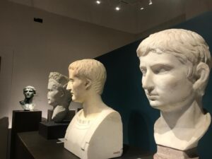 La seconda sala racconta la battaglia di Azio, a seguito della quale Augusto nel 31 a.C. fondò un nuovo sistema politico. La testimonianza di Strabone dell’avvio con Augusto di un’intensa attività edilizia fa pensare che l’isola ospitasse a quel tempo più di una residenza imperiale, che il principe ornò di oggetti rari e antichità. È possibile, quindi, che già ad Augusto appartenessero le dodici ville di Tiberio menzionate da Tacito (Annali IV, 67). Sicuramente all’età augustea risalgono la villa in località Palazzo a Mare-Bagni di Tiberio, e quella di Damecuta.