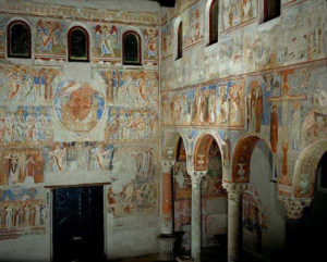 Gli affreschi delle pareti delle navate laterale: storie dell’Antico Testamento (molto danneggiato): rimangono quattordici scene, tratte dai libri della Genesi e dell’Esodo (Cacciata dei Protoparenti, le storie di Caino e Abele, le storie di Noè, quelle di Abramo e Isacco) e, infine, la storia di Gedeone, tratta dal libro dei Giudici. Al di sotto, medaglioni con i ritratti degli abati di Montecassino.