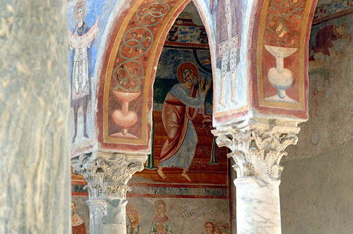 Gli affreschi dell’abside minore sud: Vergine tra due Angeli.