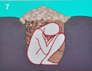Non comprendiamo l’assoluto silenzio, durato quasi 30 anni, del bravissimo e purtroppo compianto, professore Tusa. Noi adesso tentiamo di dare una interpretazione del loro uso. Si dovrebbe trattare di sepolture a inumazione ovvero di tombe a pozzetto circolare in cui venivano deposti i corpi dei defunti in posizione seduto, fortemente rannicchiato (foto 6); la parte superiore del pozzetto veniva ricoperto da un tumuletto di pietre e terra.