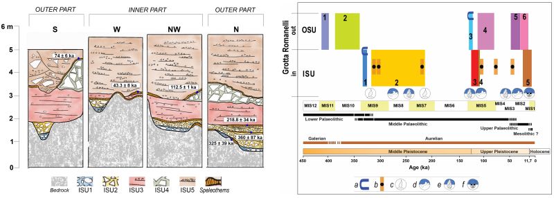 Nel complesso degli strati inferiori infatti sono stati messi in luce microfossili marini e livelli stalagmitici che, insieme a fossili di grandi mammiferi e strumenti in calcare, hanno permesso di attribuire i depositi a un periodo più antico del Tirreniano. Le datazioni sono state realizzate in collaborazione con il laboratorio HISPEC di Taiwan.