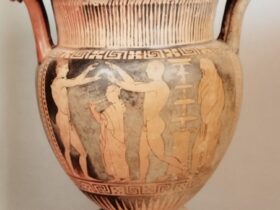 Il cratere (altezza cm 38,5; diametro 40,5 cm circa), che rientra nella produzione etrusca ...