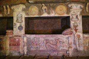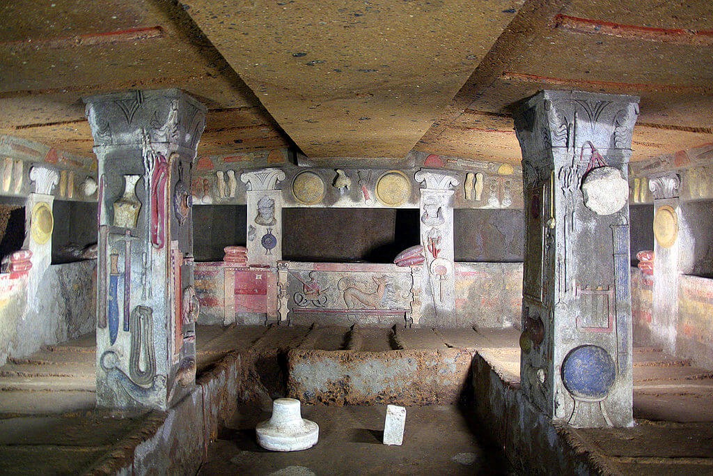 La tomba dei Rilievi (nota anche come “tomba degli Stucchi” o “tomba Bella”) fu scoperta da Giovan Pietro Campana nel 1847 a Cerveteri nella necropoli della Banditaccia.