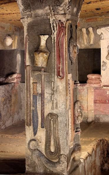 Di seguito immagini degli interni della tomba dei Rilievi del cippo iscritto e del dromos.