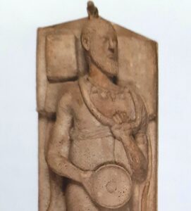 Sul lato frontale della cassa del sarcofago del magistrato (alt. 60 cm; lungh. 190 cm; largh. 66 cm) è rappresentato il viaggio di un magistrato verso l’oltretomba: il defunto è accompagnato dalla moglie e del corteo fanno parte anche servi con carro e sella curulis, musici ed apparitori muniti di insegne. Sul lato breve del sarcofago il corteo sembra completato da due giovani nudi in atto di danza e con accompagnamento musicale.