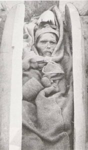Inutile dire che il contadino pensò di essere arrivato nell’Aldilà, quando spostando la coperta di cuoio di una delle barche si trovò di fronte un volto perfettamente conservato. E fuggì disperato, pieno di terrore. Ma attorno a ciò che raccontò si svilupparono le prime verifiche.