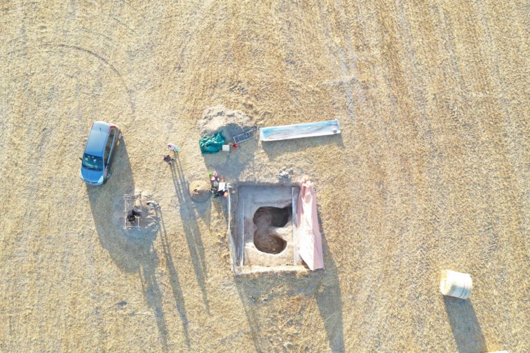 La necropoli dell’Età del Bronzo, che accolse i corpi di più generazioni della stessa famiglia, è stata trovata in campagna, in ipogei rilevati grazie all’azione dei georadar, che hanno segnalato la presenza delle cavità-.
