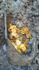 Nel settembre 2018 aveva fatto notizia lo straordinario rinvenimento, nel corso di indagini archeologiche condotte dalla Soprintendenza Archeologia Belle Arti e Paesaggio per le province di Como, Lecco, Monza e Brianza, Pavia, Sondrio e Varese, di un tesoro composto da 1000 solidi di V secolo d.C. e da alcuni altri manufatti aurei.
