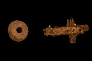 Tra i pochi elementi di corredo sono stati individuati pettini in osso, fusi circolari da telaio, un orecchino in rame, assieme a occasionali frammenti di ceramica a impasto grezzo.