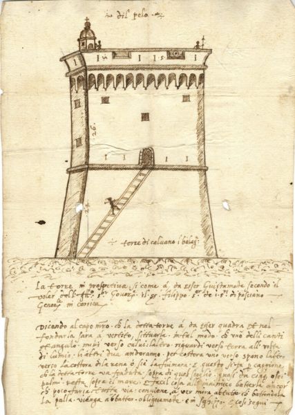 Diversi documenti archivistici – scritti e disegni tecnici dell’epoca – fanno luce sulla struttura, che fu realizzata a partire dal 1585 e che fu probabilmente completata alla fine del secolo stesso. Ma, poiché i progetti potevano essere parzialmente mutati in corso d’opera, gli archeologi stanno giocando una partita doppia tra i dati provenienti dai rilievi sul campo e i documenti d’archivio. Questa indagine consentirà un intervento di restauro ricostruttivo, con materiali e tecniche dell’epoca, in aderenza a ciò che la torre realmente era.