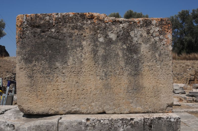 «Un saggio di scavo condotto tra le lastre della pavimentazione romana della cella del Tempio di Apollo ha messo in luce un piano in calcare riferibile al V secolo di cui non si aveva alcuna storica memoria nel santuario» dice Bonetto. «Questo risultato è stato raggiunto grazie al rinvenimento di uno straordinario reperto costituito da una rarissima moneta (statere) in argento emessa alla zecca Knossos recante al dritto il celeberrimo Minotauro e al rovescio il Labirinto di Knossos, evocatori del mito dell’ateniese Arianna e del mostro cretese sconfitto da Teseo. Il pezzo è databile tra il 440 e il 360 avanti Cristo e permette di fissare a questo periodo un importante rinnovamento del santuario e di illustrare i possibili rapporti tra le due polis emergenti di Gortyna e Knossos che si contenderanno a lungo il primato sull’isola».