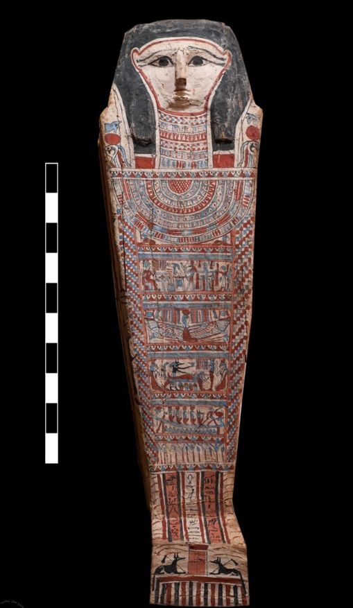 Nell’edificio funerario gli archeologi hanno portato alla luce sarcofagi, ceramiche offertoriali, cassoni dipinti e ritratti, che si avvicinano al realismo romano.