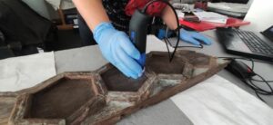 “La scorsa settimana, – comunica il Centro Conservazione e Restauro “La Venaria Reale” – due delle nostre scienziate della conservazione sono volate al Ercolano – Parco Archeologico per analizzare, mediante strumentazione portatile non invasiva, 16 frammenti di un controsoffitto ligneo policromo – il più antico del mondo – proveniente dalla sontuosa Casa del Rilievo di Telefo.