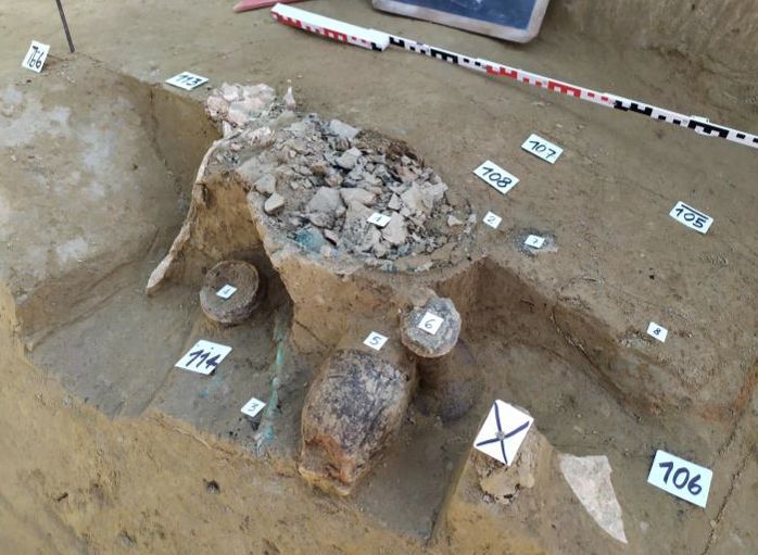 Durante i lavori del 2019, per rendere più speditive le operazioni di scavo e poter liberare più rapidamente l’area dai materiali archeologici mobili e consentire quindi la posa delle vasche di raccolta delle acque, si è operato il recupero dei nuclei tombali con l’intervento della restauratrice della Soprintendenza, Federica Santinon, rimandando le operazioni di scavo a una seconda fase, da realizzare in laboratorio.