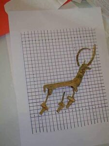 Lo stesso cacciatore offre ancora un muflone, un toro, una colomba poggiata al centro di grandi corna e un uccello che originariamente stava infilato in una spada tramite una fessura passante.