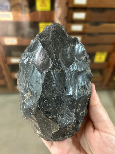 L’analisi dettagliata dei bifacciali di ossidiana rivela come essi siano estremamente standardizzati, quindi fatti da mani esperte che producevano schegge di grandi dimensioni riuscendo a ritoccarle per ottenere forme costanti e ripetute, nonostante la fragilità dell’ossidiana, un vetro vulcanico.