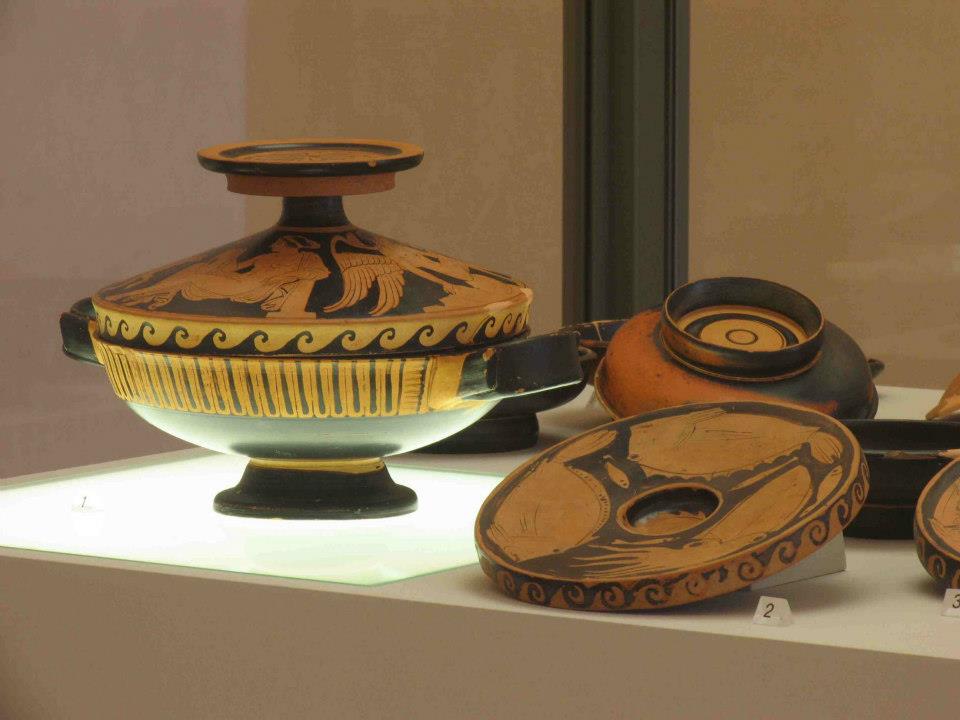 Il percorso espositivo segue un criterio cronologico. Tra i pezzi più pregiati i corredi da simposio e la straordinaria collezione di ceramiche attiche a figure rosse (crateri, kylikes, anfore, hydrie). Le pitture rappresentano scene mitologiche, prodotte da importanti artisti ateniesi dell’epoca, e testimoniano la diffusione dell’arte greca in ambito etrusco. Altre ceramiche provengono dalla Magna Grecia, con una pittura più rapida. Accanto ad oggetti di grande ricchezza ve ne sono altri di uso più comune come piatti e ciotole, askoi a forma di animale, completi per il gioco dei dadi, in osso e in pietra. Di produzione etrusca sono oggetti soprattutto in bronzo, quali candelabri, tripodi, sostegni. Da notare le ceramiche alto adriatiche, prodotte localmente quando cessarono i contatti con la Grecia.