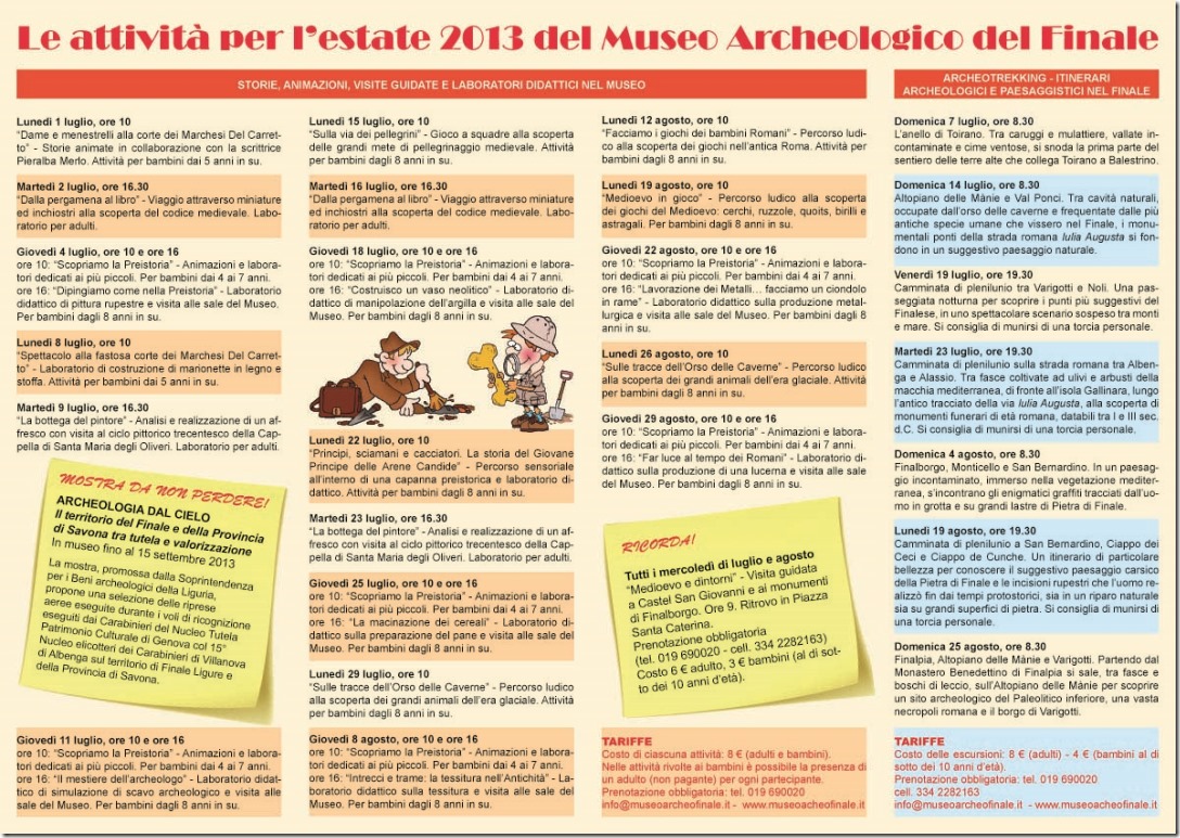 Tel. 019690029, e-mail: info@museoarcheofinale.it – sito web: http://www.museoarcheofinale.it