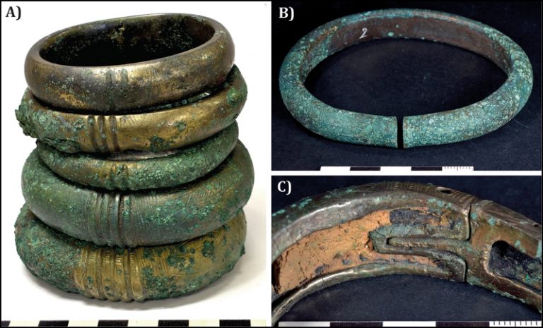 Un ricercatore dell’Università di Tolosa, Marilou Nordez, ha presentato lo studio di 89 braccialetti risalenti all’età del bronzo rinvenuti nella regione francese della Bretagna. Ritrovato da un cacciatore di tesori nella primavera del 2021, il tesoro si compone di 59 braccialetti di bronzo risalenti al 1450-1300 a.C. La scoperta è avvenuta nel comune di Kerhouarn, in Francia.