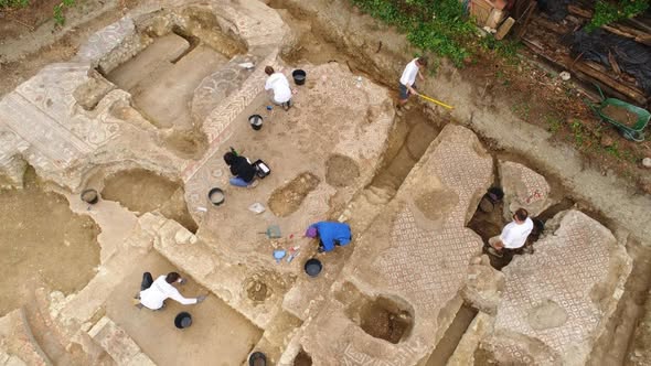 Nel corso della sua storia, la domus ha conosciuto due profonde ristrutturazioni architettoniche. Per questo motivo, un mosaico più antico è ricoperto da un altro più recente. La fine del IV e l’inizio del V secolo segnano l’abbandono della dimora aristocratica, che viene in seguito spogliata sistematicamente dei suoi materiali: vengono rimosse le pietre dai muri ed il marmo dai pavimenti, lasciando così una parte dei mosaici “amputata”.