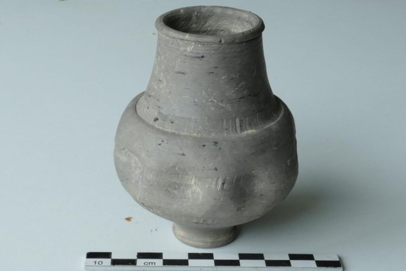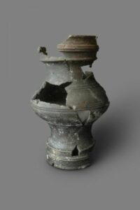 Lo scavo del 2021 – oltre alla fattoria – ha rivelato un’altra necropoli dello stesso periodo, situata a diverse centinaia di metri di distanza, ai margini del sito dell’insediamento. È circoscritta da un recinto aperto ad est. Tre tombe occupano lo spazio centrale, tra cui una più riccamente dotata che contiene cinque vasi e due perle di vetro blu.