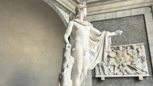 Dopo cinque anni (tra cui il “fermo” della pandemia da Covid!), si è svelato quindi il sipario sull’Apollo del Belvedere, una volta rimossi dal “Cortile Ottagono” i pannelli del cantiere di restauro che, ovviamente, oscuravano la bellezza eterea, senza tempo, di una delle sculture – simbolo dei Musei Vaticani, scoperta tra le rovine di una domus sul colle romano del Viminale nel 1489, e poi collocata in Vaticano da Papa Giulio II tra le statue che “dovevano celebrare la continuità tra la Roma antica ed il suo pontificato”.
