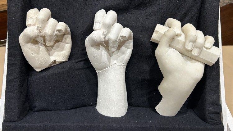 La statua vaticana è infatti copia romana dell’originale opera del 330 a.C., attribuita all’ateniese Leochares. L’artista sfruttando la leggerezza del bronzo ideò la posa della divinità ritratta nell’istante immediatamente successivo ad aver scoccato una freccia. “Nel corso del restauro – aggiunge la curatrice – ci siamo resi conto che, come già altri in passato avevano notato, la mano ricostruita nel Cinquecento da Giovannangelo Montorsoli era piuttosto grande, con una posizione non proprio corretta per un arciere. Soprattutto abbiamo avuto la possibilità di provare sull’Apollo del Belvedere il calco della mano di Baia. Il gesto è diventato più naturale, la mano proporzionata e leggera”.