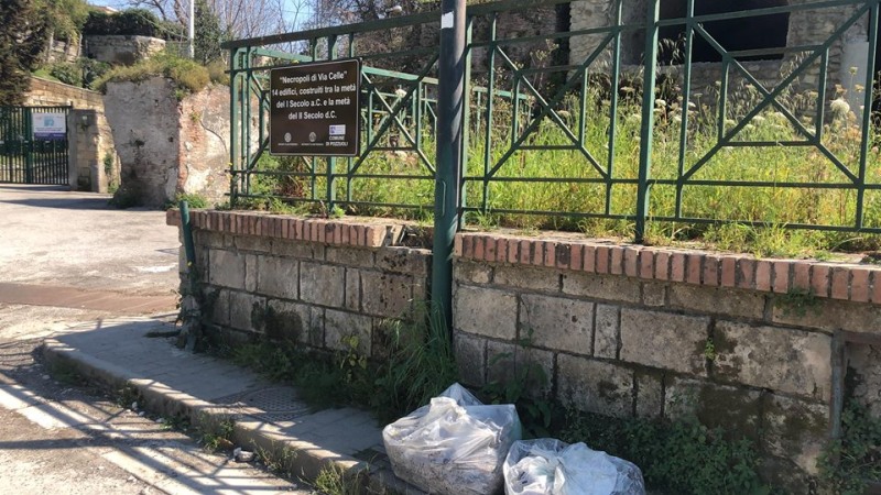 Com’era d’uso nelle città antiche, fuori dalle mura si stagliavano le necropoli, costruite costeggiando le vie principali, quasi a ricordare al viandante la fragilità della vita. A Pozzuoli, i resti più rilevanti e significativi si estendono all’inizio del tratto extra urbano della Via Consularis Puteolis-Capuam, con particolare concentrazione nelle zone di via Celle e di San Vito. Lo sconcerto ti assale quando si percorre la prima, per rimirare la necropoli romana, appena dopo la breve galleria, provenienti da piazza Annunziata. La caratteristica struttura ad architettura funeraria a celle, in cui venivano conservate le anfore con i resti mortali degli antichi abitanti di Puteoli, versa da anni tra erbacce, cartacce e bottigliette di plastica infilate dappertutto, con tra gli scavi pure una sorta di…moderno “vespasiano”. Ipogei e colombari, con due tabernae, giacciono lì, esposti e senza che nessuno intervenga, all’usura del tempo ed alla devastante azione dell’uomo che li ha, irresponsabilmente, utilizzati nei secoli come cantine, ovili, porcili e persino abitazioni. Essi furono tuttavia a lungo annoverati tra le mete degli eruditi antiquari che visitavano la zona, incantati ed attirati dal loro fascino arcano.