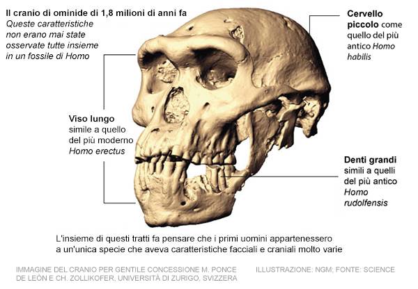 Così, il gruppo di Lordkipanidze ha usato la TAC e sofisticati modelli tridimensionali al computer per confrontare i suoi fossili. E ne ha concluso che, per quanto quelle ossa appaiano molto diverse, le loro differenze non sono superiori a quante se ne troverebbero confrontando cinque esseri umani moderni, o cinque scimpanzé. Tanto basta a confermare che i cinque individui di Dmanisi appartengano alla stessa specie, come faceva pensare anche il fatto che siano stati scoperti nello stesso luogo e nello stesso strato, e dunque che fossero contemporanei.