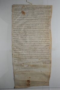 A tale documento ho dedicato uno studio nel lontano 2011, pubblicato negli Annali della Facoltà di Giurisprudenza di Taranto, evidenziando che la pergamena, vergata in beneventana, contiene la sintesi massiva di un processo svoltosi “in Castello Massafra” secondo la procedura tipica longobarda che, come è noto era caratterizzata dalla oralità e dalla immediatezza, non essendo mai esistita nè nel Regno del Nord nè nei ducati di Spoleto e di Benevento alcuna burocrazia assimilabile ad una moderna cancelleria.