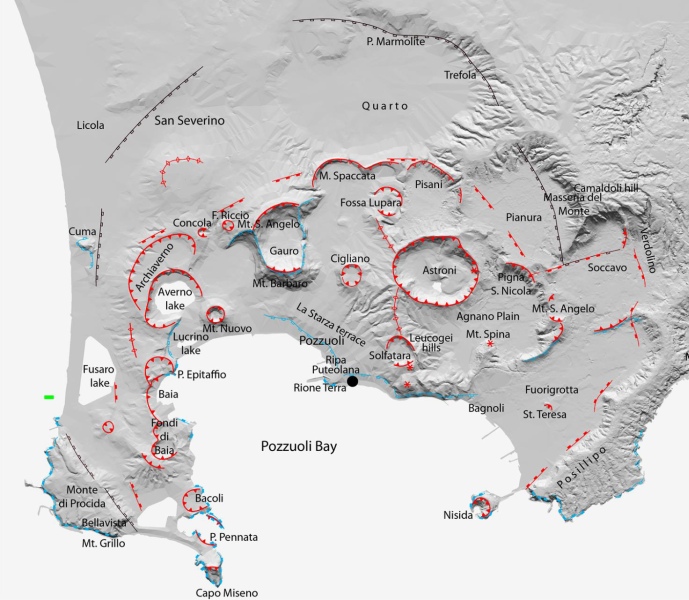 I Campi Flegrei sono una grande depressione vulcano-tettonica interessata da periodiche eruzioni e da persistenti fenomeni postvulcanici. Al centro vi sorge la città di Pozzuoli e, a breve distanza da questa, si trovano due aree solfatariche adiacenti, la Solfatara di Pozzuoli e la Conca di Agnano, questa interessata dalle fumarole dei Pisciarelli e dai vapori di Agnano. Le due aree sono spesso confuse tra di loro, sebbene siano nettamente divise da un cordone collinoso residuo di più antiche eruzioni, lungo il quale si sviluppava il confine storico fra i territori di Napoli e di Pozzuoli.