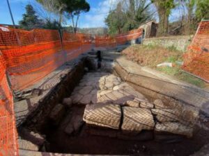 “Il tratto – spiega la funzionaria – è costituito da una carreggiata di circa quattro metri e mezzo e presenta, sia a nord che a sud, dei cosiddetti vespai, un sistema utilizzato all’epoca per far defluire l’acqua”. “Lungo il lato sud – continua la Serio – sono stati inoltre ritrovati almeno due filari di blocchi di peperino grigio-verde, tipico dell’area dei Colli Albani, che saranno meglio indagati per comprenderne appieno l’utilizzo. È previsto anche un piccolo saggio nell’area a nord per appurare la stratigrafia al di sotto del piano stradale antico e individuare eventuali fasi precedenti”.