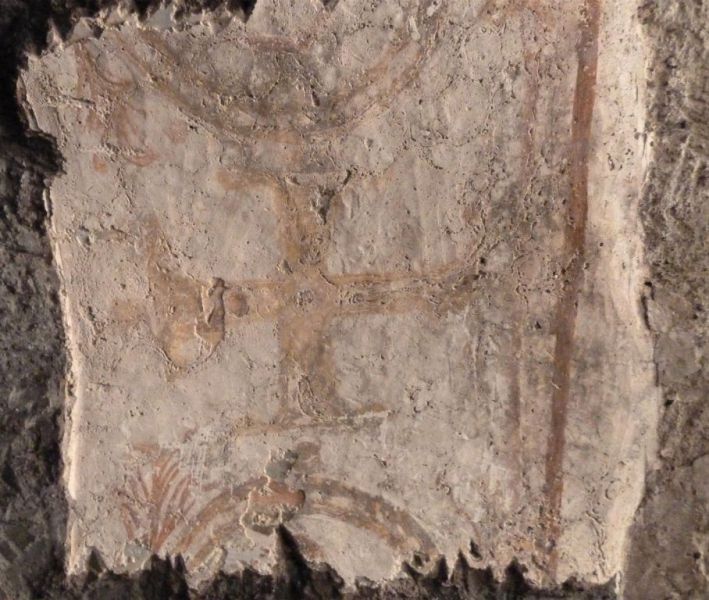 Durante la rimozione dell’interro sono stati scoperti il livello dell’accesso originario e la parte inferiore delle figure a destra di questo. Inoltre si sono recuperati numerosi frammenti di intonaco dipinto provenienti dalla volta e dalle pareti, che sono attualmente in fase di pulitura nei locali-deposito della Soprintendenza annessi al Museo Civico Archeologico “Rodolfo Lanciani” di Montecelio.