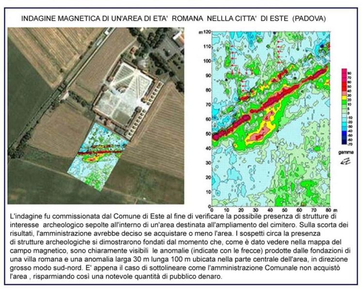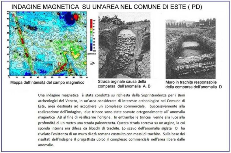 Il metodo magnetico si basa sulla misura del campo magnetico terrestre. Magnetometri a protoni e i più recenti magnetometri al cesio permettono di coprire grandi superfici in un periodo di tempo limitato registrando una quantità enorme di dati. L’indagine magnetica ha come principale obiettivo l’individuazione dei cambiamenti (anomalie) del campo magnetico terrestre, le anomalie magnetiche sono per lo più prodotte da strutture archeologiche sotterranee. Due diversi meccanismi sono responsabili della comparsa di anomalie magnetiche: il magnetismo residuo termico e il magnetismo indotto. Il primo è responsabile delle anomalie associate con strutture quali forni, fornaci, tombe, fondazioni e muri in mattoni o in roccia di origine magnatica; il secondo meccanismo genera le anomalie connesse a strutture archeologiche quali pozzi, latrine, sepolture e fossati